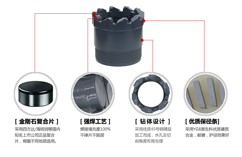 173 PDC圆弧取心钻头(单管)