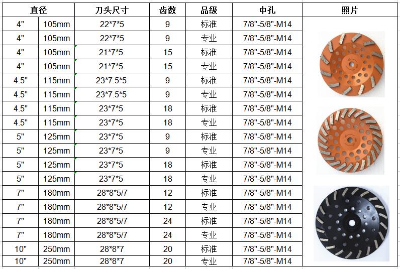 应用:用于混凝土、沥青、花岗岩、大理石等建筑材料的打磨整平。
