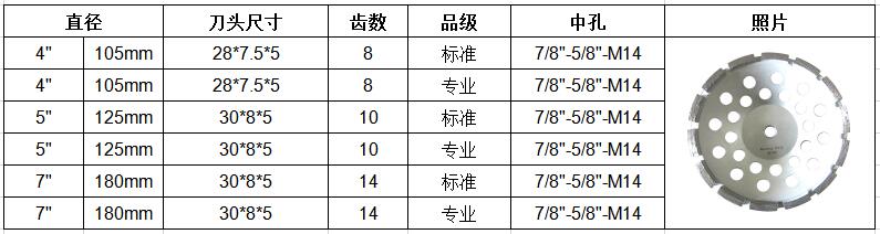 应用:用于混凝土、沥青、花岗岩、大理石等建筑材料的打磨整平。