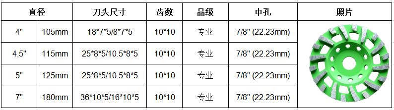 应用:用于混凝土、沥青、花岗岩、大理石等建筑材料的打磨整平。
