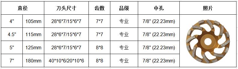 应用:用于混凝土、沥青、花岗岩、大理石等建筑材料的打磨整平。
