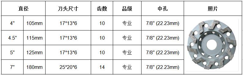 应用:用于混凝土、沥青、花岗岩、大理石等建筑材料的打磨整平。