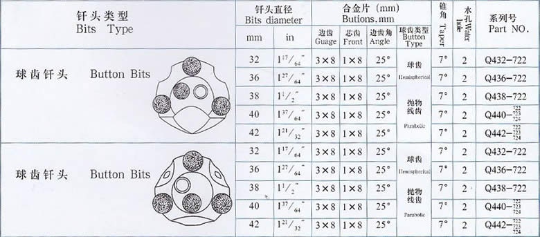 32 球齿型风钻头