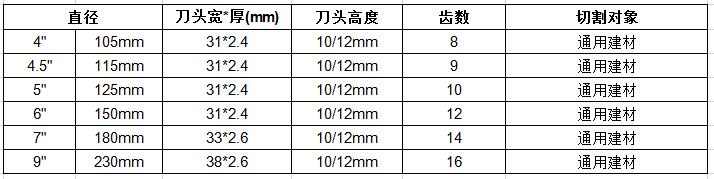 用于普通建筑材料、水泥路面、水泥预制板、花岗岩、砂岩、石板、瓷砖、混凝土的切割。