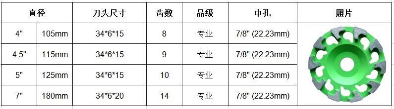 应用:用于混凝土、沥青、花岗岩、大理石等建筑材料的打磨整平。