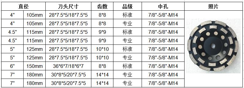 应用:用于混凝土、沥青、花岗岩、大理石等建筑材料的打磨整平。