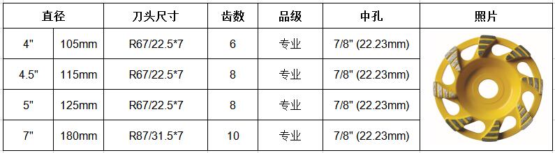 应用:用于混凝土、沥青、花岗岩、大理石等建筑材料的打磨整平。